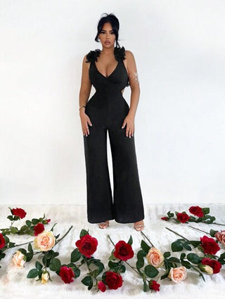 SXY جمبسوت رشيقة وجذابة ذات حزام عبر ظهر مفتوح، مناسبة لعيد الحب، مكشوفة الظهر، بذلات للنساء، جمبسوت سوداء للنساء، بذلات أنيقة للنساء
