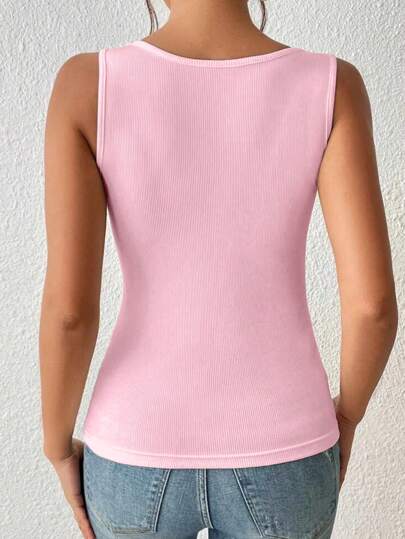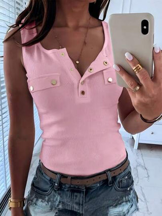 SXY خزَّانة نسائية بدون أكمام بأزرار معدنية بأسلوب كاجوال بلون وردي