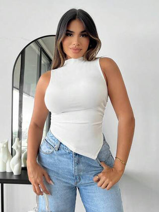 SXY لباس علوي تانك وقوف الياقة حافة غير متماثل