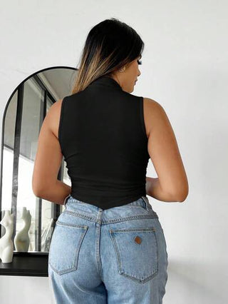 SXY ملابس علوية صيفية بياقة مرتفعة وذيل غير متناسق