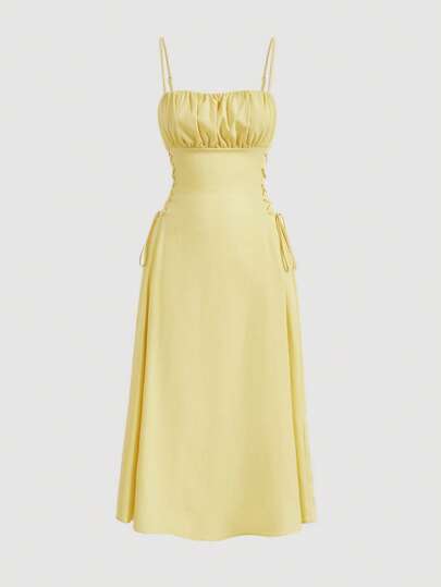 فساتين حريمي MOD فستان كامي موحدة اللون طية صدر برباط جانبي