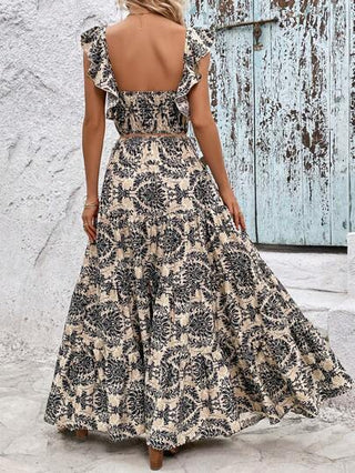 طقم حريمي قطعتين VCAY تنورة مع لباس علوي طباعة شامل مقلم بكشكش