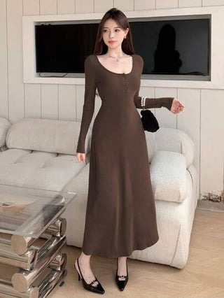 فساتين حريمي DAZY فستان نسائي بلون صلب للارتداء اليومي مع أزرار من الأمام