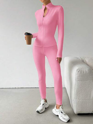 SHEIN EZwear مجموعة تريكو احجامين أسود، جاكيت بسحاب وبنطلون ضيق للرياضة