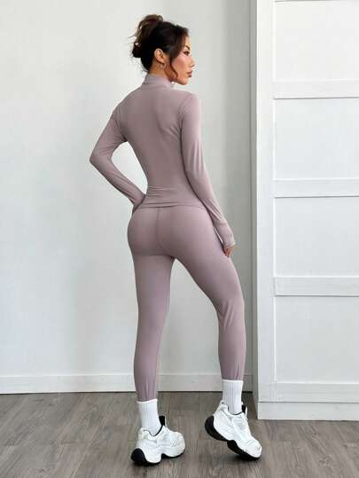 SHEIN EZwear بدلة رياضية قطعتين بسحاب بنفسجية اللون: جاكيت وتايت