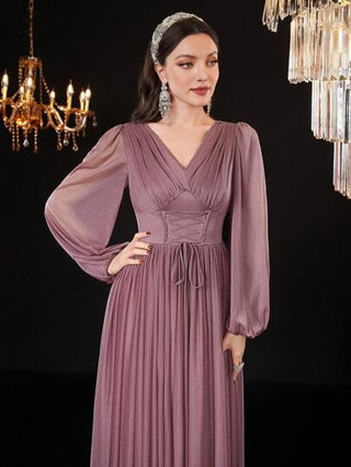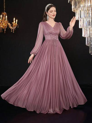 فساتين حريمي Modelyn فستان سهرة أنيق طويل قطعة واحدة مع أكمام فانوس، فستان سهرة راقي وفخم لحفلات المساء