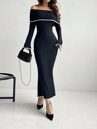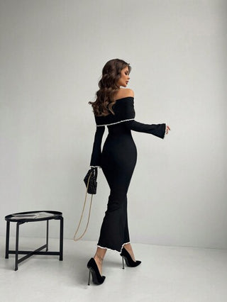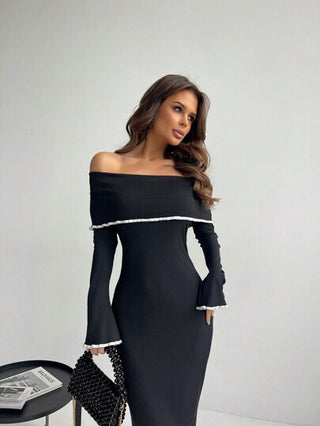 فساتين حريمي Aloruh فستان نسائي بأكمام مكشكشة ونمط ذيل السمكة مع تفاصيل ملونة وتصميم بدون أكتاف