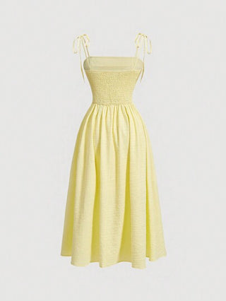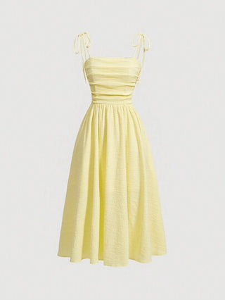 فساتين حريمي MOD فستان صيفي عادي أحادي اللون بخصر مشدود وأربطة قابلة للضبط