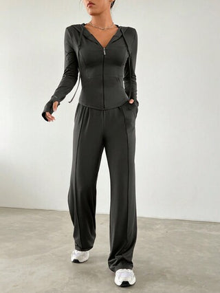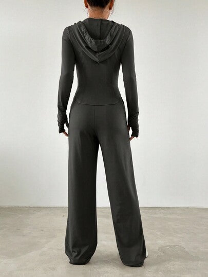 SHEIN EZwear سيت رياضي عارضين هودي نحيل للنساء وبنطلون رياضي بقدم مستقيم