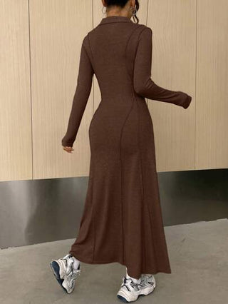 فساتين حريمي EZwear فستان نسائي من الصوف المحبوك بلون سادة و أزرار بالأمام