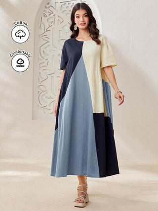فساتين حريمي Mulvari فستان يومي بأكمام قصيرة ورقبة دائرية ومزيج من الألوان للنساء