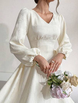 فساتين حريمي Modelyn فستان سهرة طويل للنساء بياقة على شكل V وأكمام فانوس