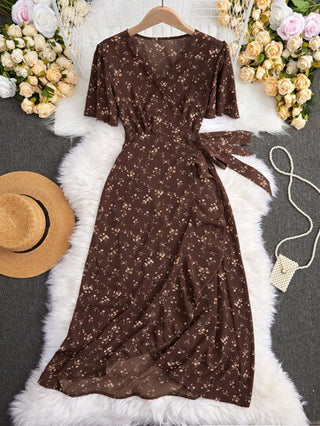 فساتين حريمي Breezaya فستان طويل نسائي بتصميم لف مطبوع بالأزهار للإجازة والشاطئ