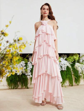 فساتين حريمي MOTF PREMIUM فستان بحمّالات ذات تفصيل زهري متعدد الطبقات و حواف متجعدة.