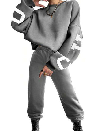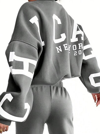 INAWLY سترة رياضية نسائية بأكمام طويلة منخفضة الكتف مطبوعة بالأحرف ومجموعة سراويل جوجر