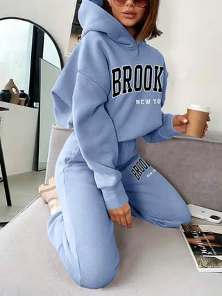 INAWLY بدلة هوديي وبنطلون طباعة حرف للنساء 2 قطعة