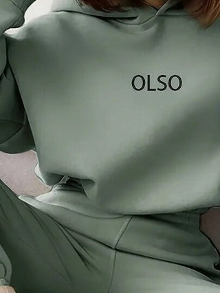 INAWLY مجموعة سترة بقلنسوة وبنطلون رياضي مطبوع عليها حروف للنساء