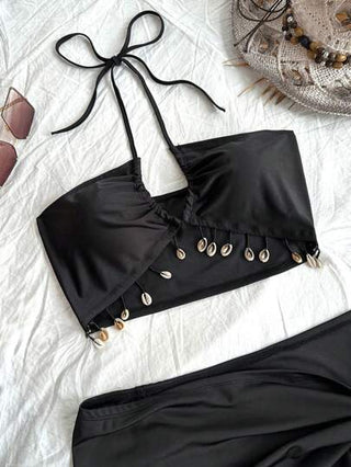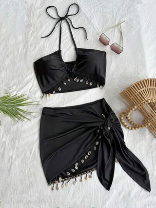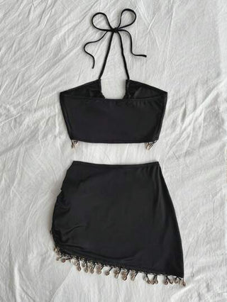 طقم حريمي قطعتين Soleia مجموعة قطعتين سوداء بحافة متدلية ترفيهية عارضة للنساء من WYWH