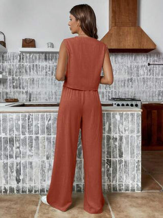 طقم حريمي قطعتين Frenchy سترة بأزرار بلون سادة وبنطال عادي مستقيم