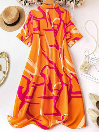 فساتين حريمي Breezaya فستان صيفي ماكسي للسيدات مصنوع من قميص أسفل بأزرار وأكمام قصيرة مع طباعة نمط