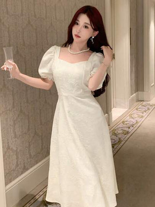 فساتين حريمي DAZY فستان صيفي أنيق بتصميم الياقة المربعة بأكمام منتفخة، قماش جاكارد ذو لون بسيط، مناسب لحفلات عيد الميلاد ورأس السنة والسهرات