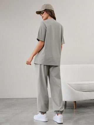 طقم حريمي قطعتين Mulvari طقم بلوزة كاجوال قصيرة الأكمام مطبوع عليها حرف وبنطلون جوجر، طقم صيفي مكون من قطعتين للنساء