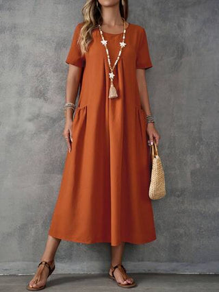فساتين حريمي EMERY ROSE فستان صيفي غير رسمي بلون واحد مع جيبين وأكمام قصيرة