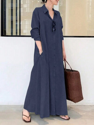 فساتين حريمي فستان قميص أكمام طويلة بلون أحادي للنساء