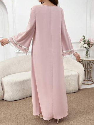 فساتين حريمي Al Najma فستان نسائي أنيق على الطراز العربي محتشم ، مزين بأساور مرصعة بالؤلؤ الاصطناعي، وياقة مربعة وأكمام طويلة واسعة