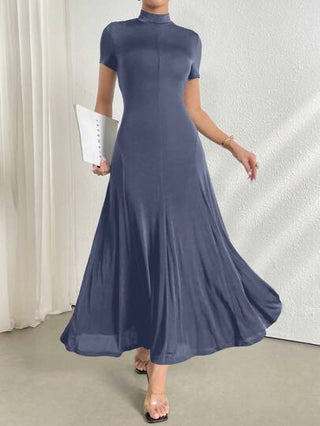 فساتين حريمي Mulvari العيد فستان أنيق من لون كتلة مع طوق قائم وأكمام قصيرة مطوية