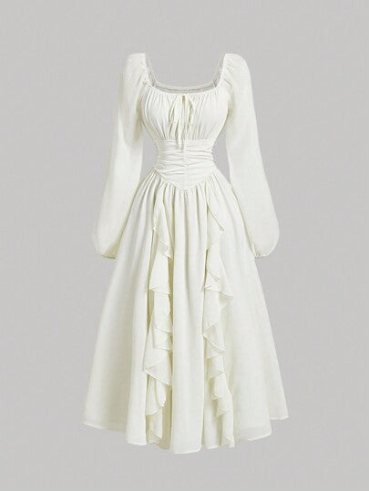 فساتين حريمي MOD فستان فتاة بأكمام فوانيس مكشكش باللون المشمشي، فستان لحضور حفل زفاف خريفي، فستان عصر النهضة، فساتين حفلات الترحيب