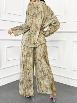 طقم حريمي قطعتين Modelyn مجموعة ملابس علوية ذات أكمام طويلة و بنطلون كاجوال فضفاض مطبوع بلمسة باتيك للنساء، قطعتان، بتصميم ربيعي و صيفي