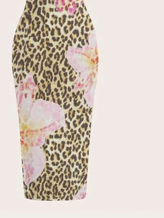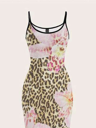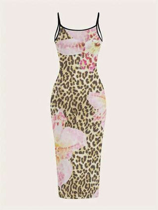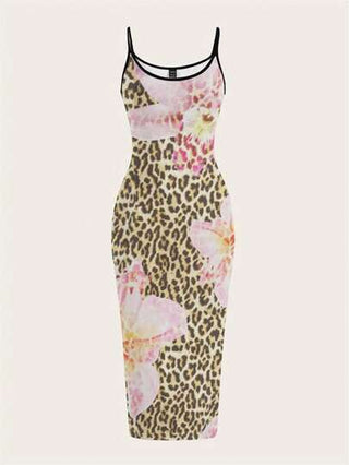 فساتين حريمي EZwear فستان ضيق مطبع بنمط الفهد والزهور الزهرية باللون الوردي البسيط للإطلالات الصيفية
