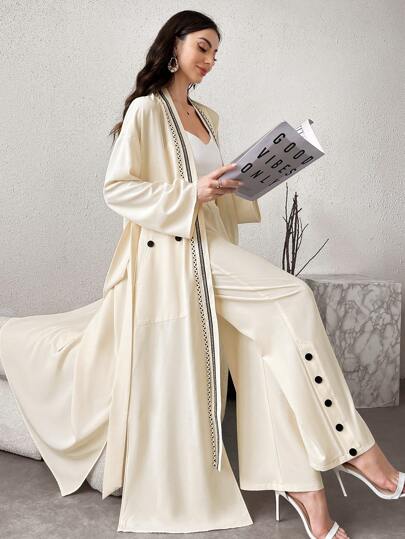 طقم حريمي قطعتين Al Najma مجموعة جاكيت وبنطلون نسائية أنيقة من قطع الشريط، ملابس ربيعية وخريفية، للعمل/أنيقة/كاجوال/محتشمة، طقم عباءة من قطعتين