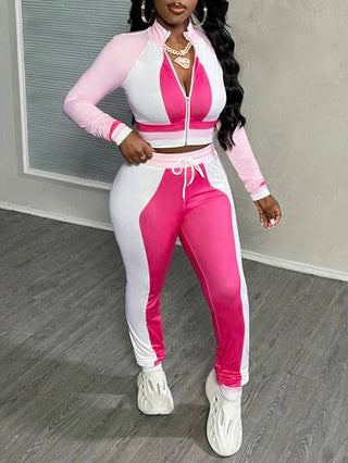 Slaydiva طقم بيجامتين للنساء بحجم M - كرديجان ممسّن بأكمام طويلة وسحّاب، مطبوع بالكامل باللونين الوردي والأبيض، وبنطال ضيق، للموسم الخريفي البسيط والعادي