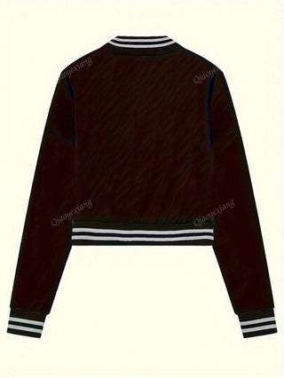 جاكيت بلون سادة وبدلة بيسبول مفتوحة من الأمام للنساء، ملابس رياضية قطعتين