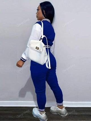 مجموعة قطعتين جاكيت رياضية للنساء - جاكيت بيسبول أحادية الصدر باللون الأحادي مع ملابس علوية