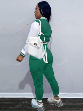 مجموعة رياضية للنساء تتكون من جاكيت أحادي الصدر بلون واحد وشورت قطعتان