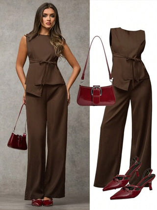 طقم حريمي قطعتين BAE طقم ملابس للسيدات مكون من سترة رسمية بتصميم غير متماثل وبنطلون، ملابس رسمية للسيدات، طراز القلب الساخن، طقمين قطعتين بتصميمات للمعلمات في موسم الخريف