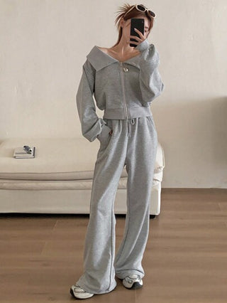 DAZY بدلة للنساء تتكون من سروال بساق متسع وقميص بياقة على شكل حرف V وأكمام طويلة 2 قطعة