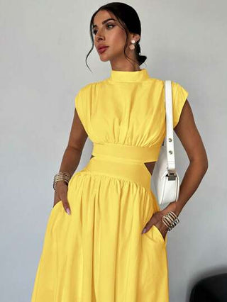 فساتين حريمي Firerie فستان صيفي أنيق للنساء للعطلات والمناسبات وحفلات الموسيقى والحفلات، مصنوع من القماش المفرغ مع جيب علوي على الخصر وأكمام طويلة