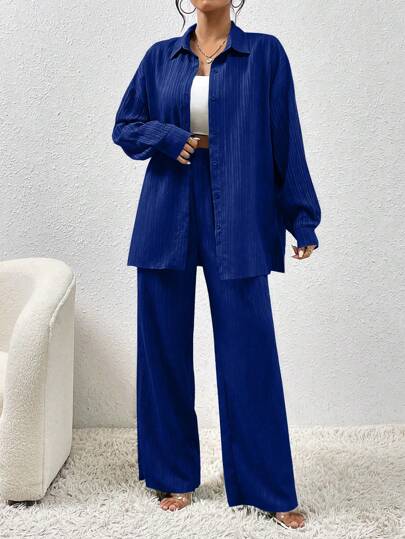 طقم حريمي قطعتين LUNE طقم بلوزة وبنطلون بأكمام طويلة للاستخدام اليومي ذو لون بسيط للنساء 2 قطع