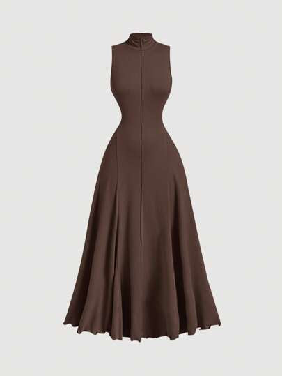 فساتين حريمي MOD فستان طويل بيدون أكمام بياقة وقوف بسيطة للنساء، ملابس كاجوال للاستخدام اليومي