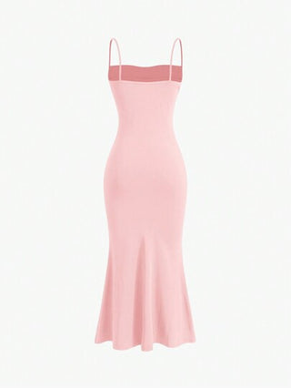 فساتين حريمي Sweetra فستان ماكسي نسائي أنيق بشريط سباغيتي وفتحة ذيل لمظهر الحورية باللون الأحادي مع طيات للصيف