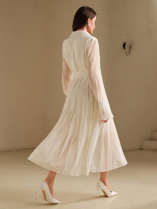 فساتين حريمي Anewsta فستان نسائي متوسط الطول مزين بياقة متجعده وأكمام جرس وحزام