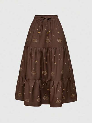 طقم حريمي قطعتين ROMWE Hippie طقم من ملابس علوية حلقة مطرز بالطراز البوهيمي الصيفي وتنورة قصيرة من نوع A للنساء