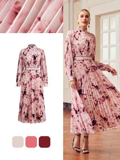 فساتين حريمي ZEYLAH فستان سادة الرقبة المزخرفة مع طيات بدون حزام