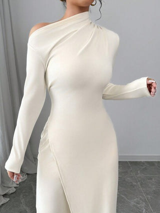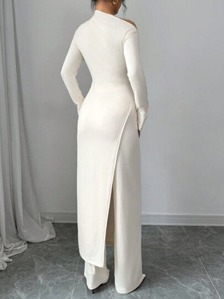طقم حريمي قطعتين Firerie مجموعة نسائية أنيقة من 2 قطعة ذات لون سادة: ملابس علوية قطيفة ذات ياقة غير متماثلة وبنطال، طقم قطعتين مضفر غير متماثل، طقم بنطال مريح من قطعتين، للخريف والشتاء