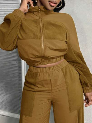 Slaydiva مجموعة مكونة من 2 قطعة: بدلة رياضية كاجوال بسوستة وياقة عالية + بنطال مستقيم الساق مبطن بالحرارة ، للنساء ، خريف/شتاء