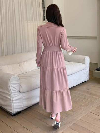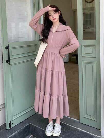 فساتين حريمي DAZY فستان نسائي أنيق متوسط الطول بياقة مفتوحة ونصف سحاب، فستان قميص مزين بالكشكشة